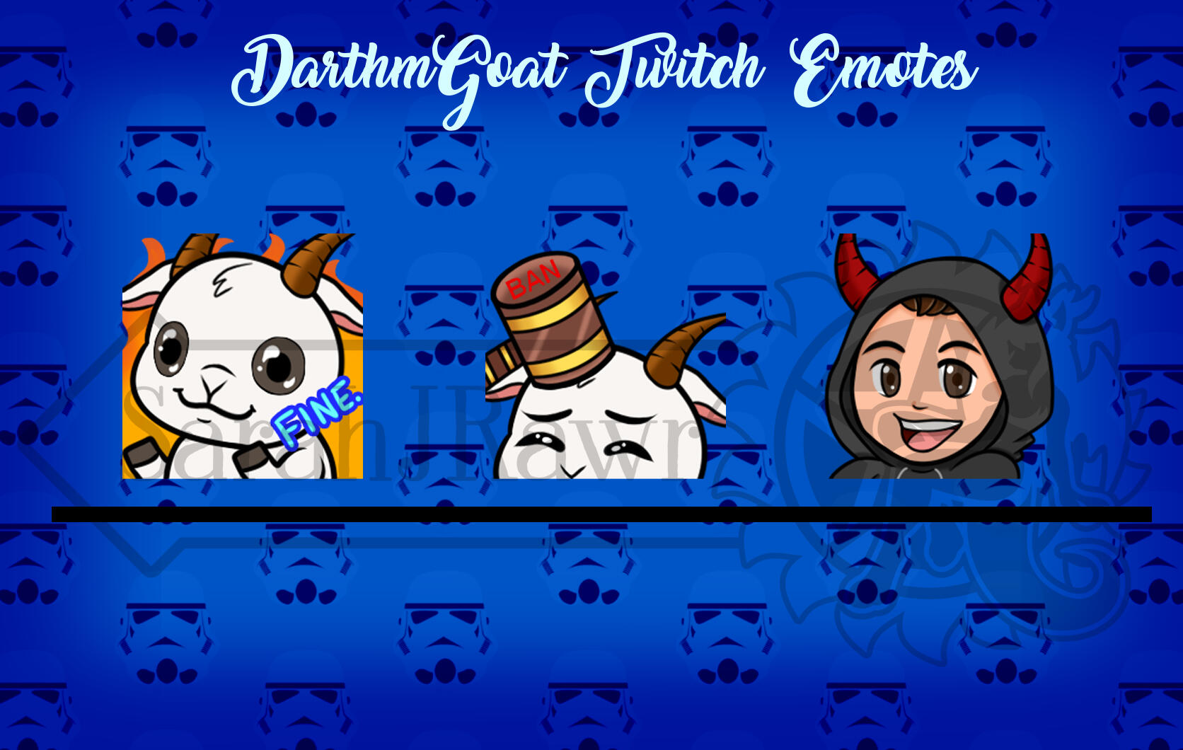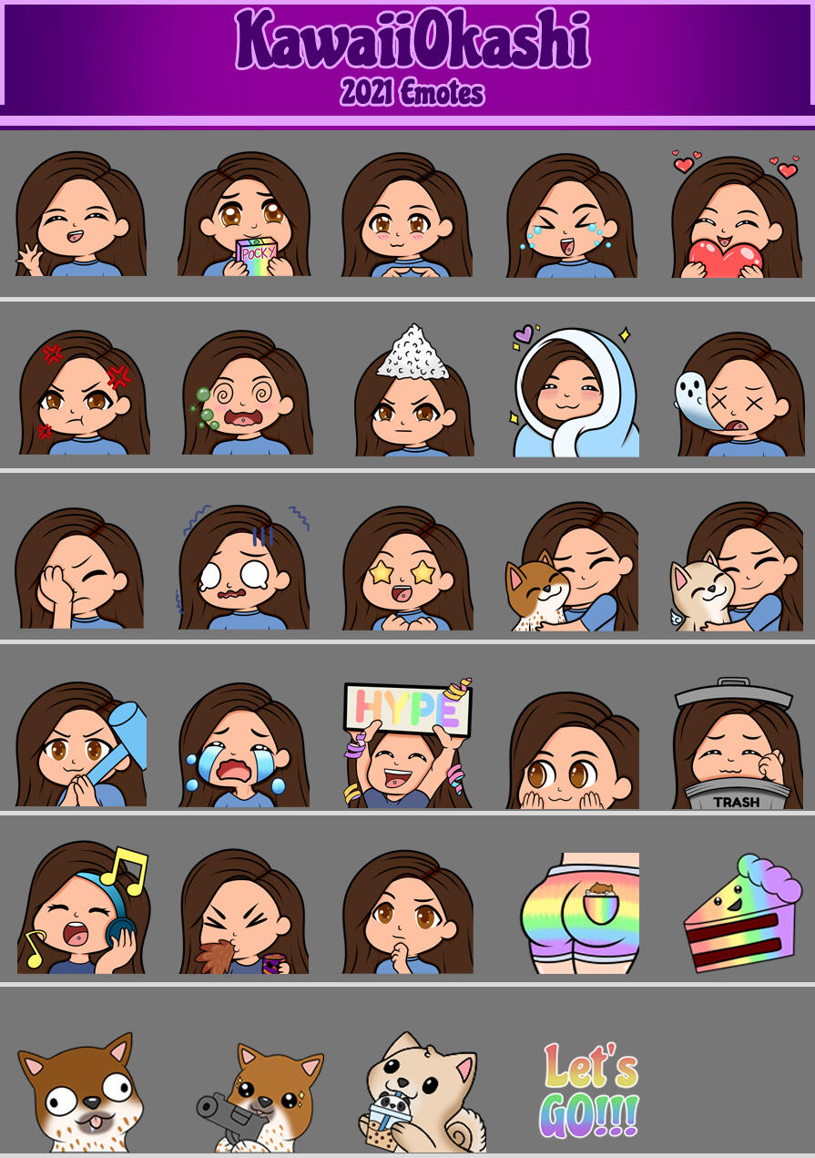 | Emotes | Size 900x000 (Reszied for Emotes) | 11$ USD per emote 40$ for pack of 5 | +5$ complex fee |